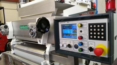 It achieves a high production thanks to perfect balancing ofits weights. The short distance of the sheet through its inner part guarantees always the right stability. The automatic insertion device makes the machine unique for its usage semplicity and the drastic reduction of the waste ofpasta at its start-up. The computerized system ofcontrol allows the optimisation ofthe scrap independently from the speed ofthe machine and the memorization ofthe recipes shape by shape.