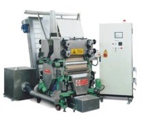 De concepción innovadora, alcanza una altísima productividad con dos moldes de 600 mm que trabajan contrapuestos. Resulta una máquina intrínsecamente equilibrada y con una relación volumen/producción extremadamente ventajosa. La robusta construcción de chapa de acero de alto espesor, como las más modernas máquinas herramientas, se presenta con una superficie plana de fácil limpieza. El racional planeamiento ha hecho todos estos grupos fácilmente inspeccionables y desmontables. Está dotada de dos grupos desmenuzadores de recortes y transporte neumático a la amasadora.
