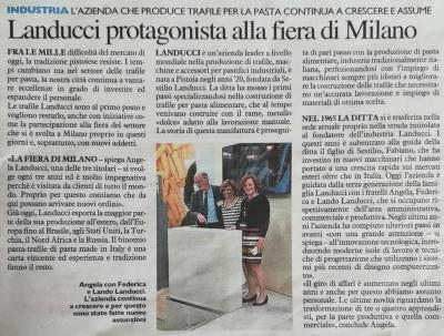 We would like to thank all our customers for their renewed confidence in Landucci, all our visitors for their interest and appreciation for our products and service, all our sales team for its great job that always allows us to be first in line among pasta dies and machinery manufacturers, all our people behind the scenes for their dedication and commitment to achieve the best for the company.