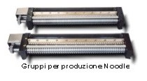 Sa conception est innovante. Elle obtient un rendement tr�s �lev� avec deux moules de 600 mm qui travaillent en opposition. La machine est intrins�quement �quilibr�e et poss�de un rapport encombrement/production extr�mement avantageux. Sa construction en t�le d'acier robuste et tr�s �paisse, telles les machines outils les plus modernes existant sur le march�, se pr�sente avec des surfaces planes et faciles � nettoyer. La conception rationnelle permet d�effectuer des inspections et de d�monter facilement tous les groupes. Elle est �quip�e de deux groupes �mietteurs de chutes de d�coupe et de transport pneumatique sur le malaxeur. Le potentiel tr�s �lev� de la machine lui permet d'effectuer un couplage avec des t�tes � partir de 1300 kg/h de p�tes s�ches.