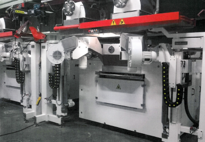 ELEVAÇÃO HIDRÁULICA DOS CONJUNTOS DE CORTE Os conjuntos de corte se levantam de modo hidráulico através de uma unidade hidráulica com cilindros de efeito duplo; o movimento de subida e de descida é rápido para diminuir o tempo de troca de formato.