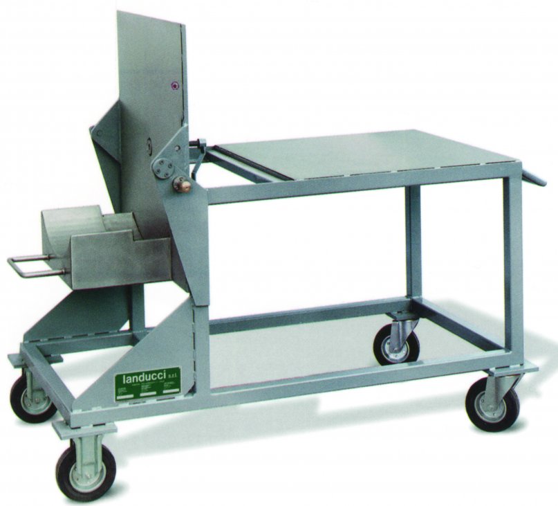Carrelli portatrafile con piano bilanciato ed estrattore anello portatrafile. Di estremo interesse sono questi tipi di carrelli che consentono di effettuare oltre al trasporto delle trafile il posizionamento di quelle circolari da orizzontale a verticale e vice versa.
