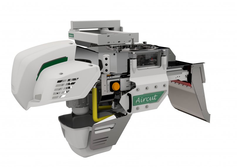 Aircut rappresenta il massimo livello di tecnologia dei taglierini Landucci. La struttura portante è formata da un telaio superiore fissato alla struttura della pressa sul quale è fissata una colonna girevole per la rotazione ed il sollevamento della maschera di taglio. I movimenti di salita e discesa della maschera di taglio sono motorizzati per garantire la massima precisione di accoppiamento e la massima sicurezza dell’operatore.