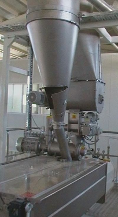 Она оснащена двумя группами измельчителей, вырезания и пневматическим переносом с замесом. Очень высокий потенциал машины позволяет ей в соединении с насадками получать до 1 100 кг / час сухой пасты. Взаимозаменяемость групп позволяет получить установки, действительно хорошо согласованные.